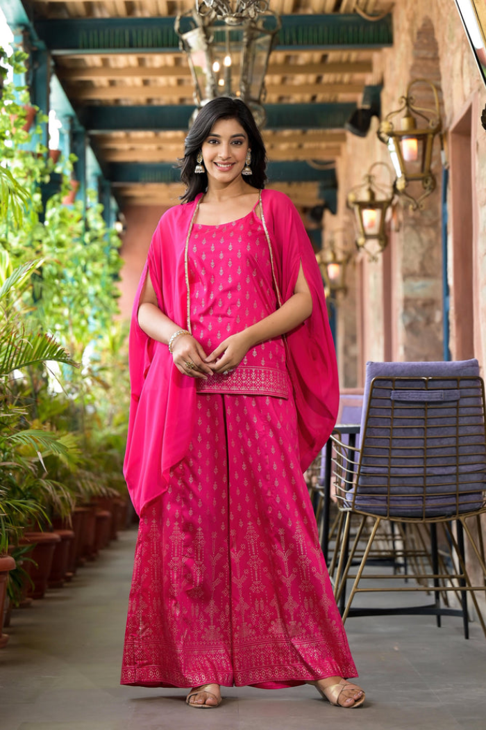 JUNIPERJuniper Coral Silk Crepe Striped Print Lehenga Choli Set